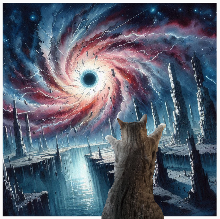 The end near, I slow. Standing on the edge of what appears to be an abyss. In the distance there is a vortex of energy sparking and zapping wildly. This has to be the exit. It doesn’t look too welcoming. The vortex starts to whirl, and electricity snaps me in the face. It is starting to suck the environment down into its core. I have got to try. Jumping towards the vortex I scream as loudly as I can…